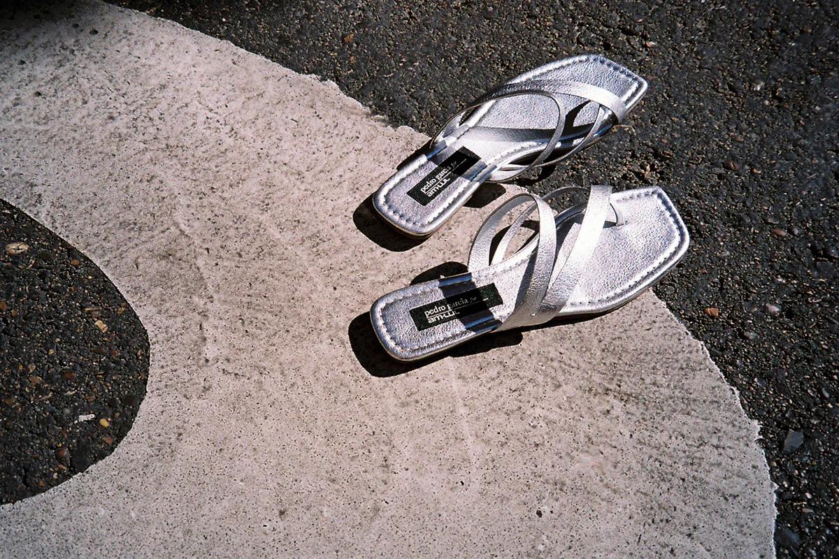 Sandals in silver with silk satin finish in collaboration with Pedro García.