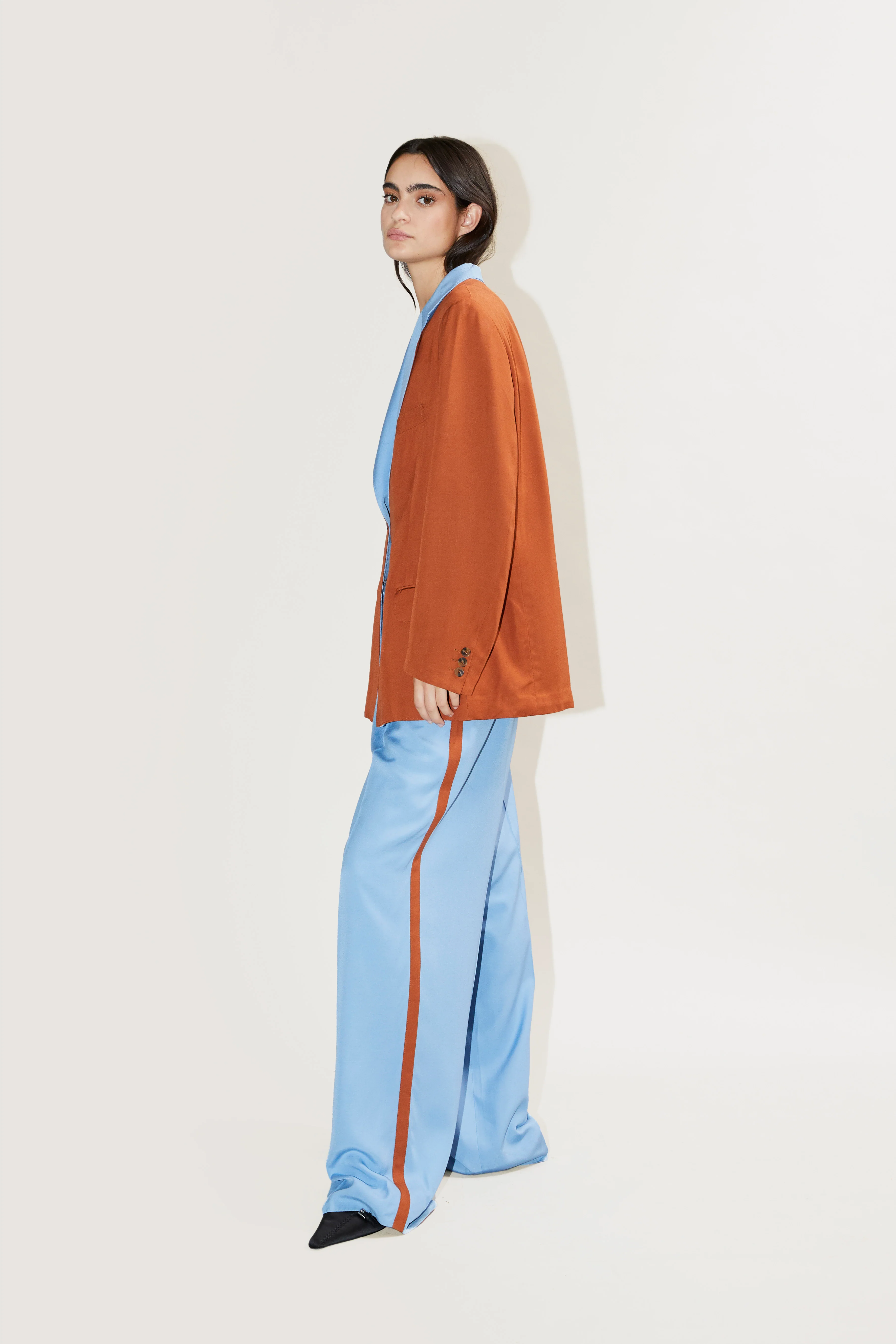 The pants are perfect for pairing with the Diana blazer, or even for combining with a shirt. They fit perfectly to the body, enhancing the silhouette.