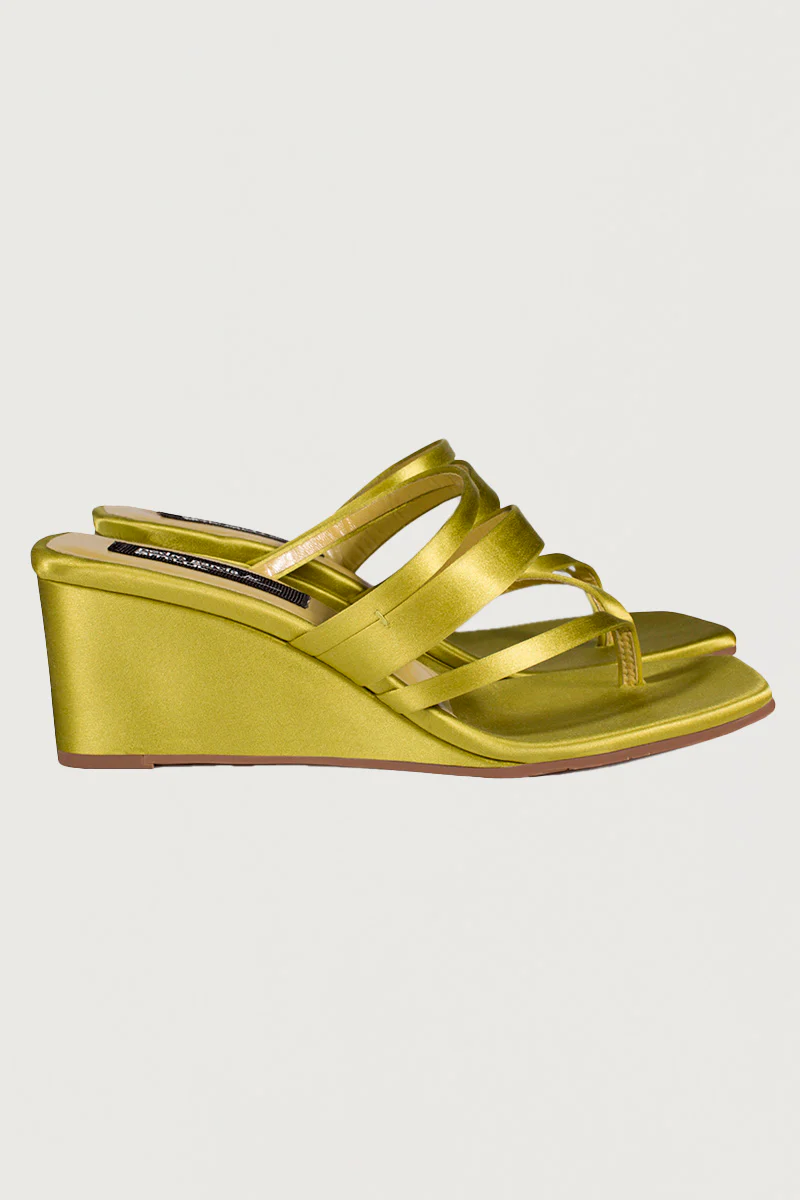Sandals in green with silk satin finish in collaboration with Pedro García.
