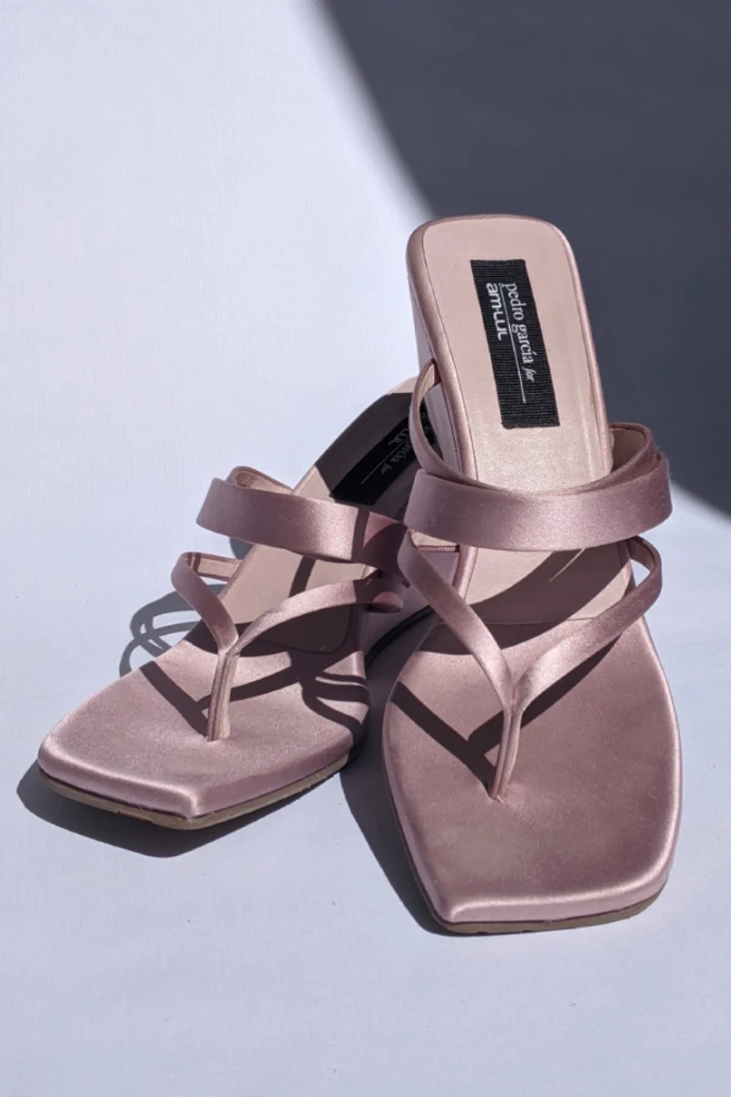 Sandals in pastel pink with silk satin finish in collaboration with Pedro García.