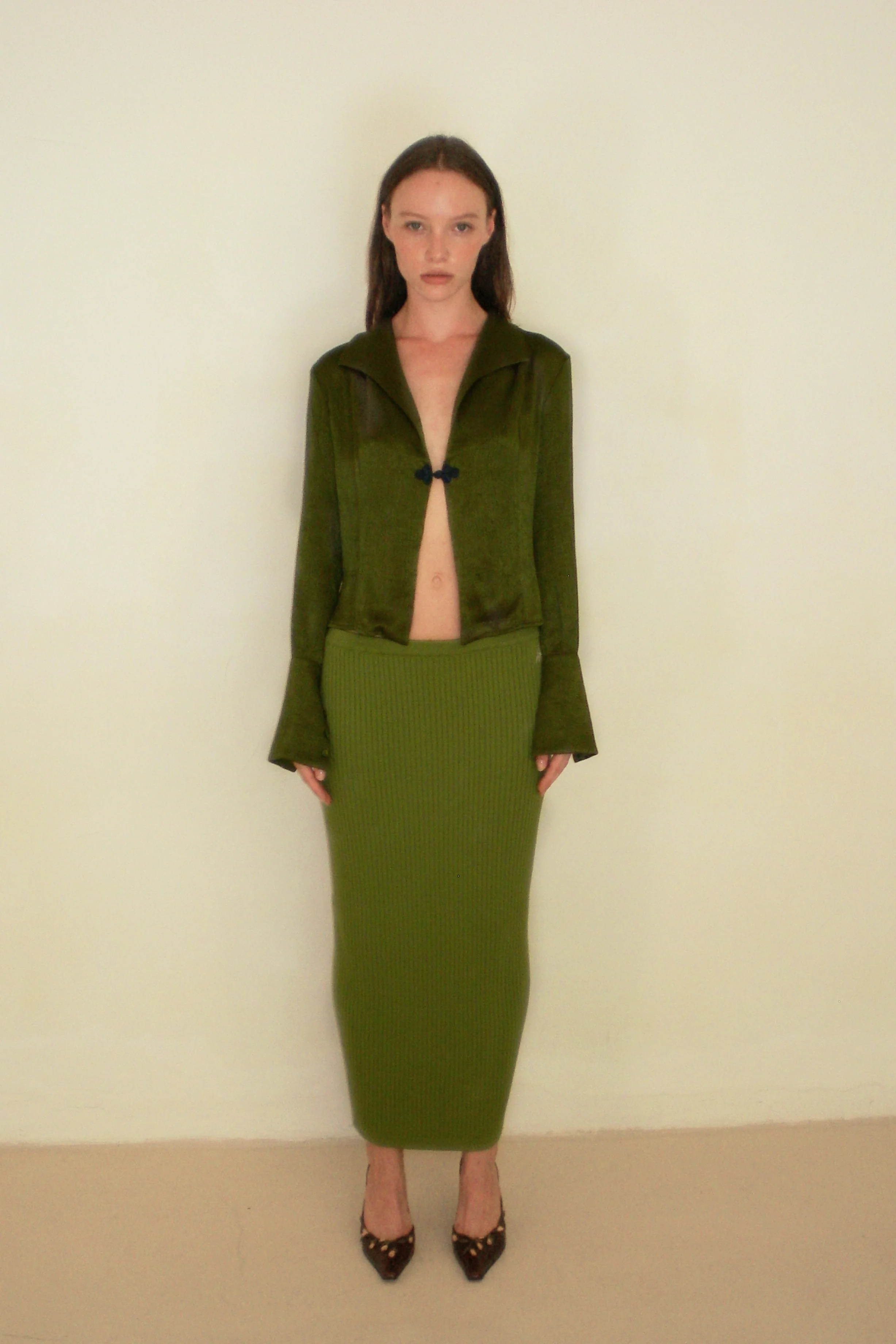 This timeless wool-cashmere blend skirt is our personal tribute to Gwyneth Paltrow in Great Expectations.A reedition of our very first Gwyneth Paltrow set, now in an acid green color.